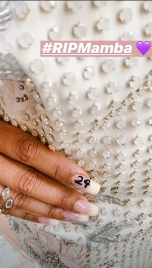 Η ηθοποιός παρευρέθηκε στα βραβεία Grammy 2020 και έκλεψε τις εντυπώσεις με την Ralph and Russo δημιουργία που φόρεσε. Ιδιαίτερη σημασία όμως είχε και το μανικιούρ της, καθώς είχε ζωγραφήσει στο ένα της νύχι το 24, τον αριθμό δηλαδή που είχε η φανέλα που φορούσε ο αθλητής του μπάσκετ στο λύκειο αλλά και στο NBA.