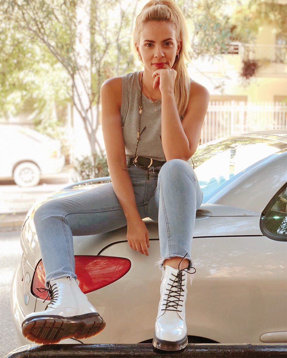 Το ξανθό είναι πολύ δύσκολο χρώμα. Τα προσέχω πάρα πολύ γιατί τα βάφω κάθε ενάμιση μήνα και κάνω ανταύγειες κάθε έξι. Από τα 18 μου μάλιστα έχω τον ίδιο κομμωτή. Αυτό που κάνω τα τελευταία χρόνια και πιστεύω βοηθά πολύ στο να διατηρούνται υγιή είναι να μην κάνω re-styling καθημερινά. Γνωρίζω ότι το να κάνεις νέο χτένισμα σε ήδη στιλιζαρισμένα μαλλιά χωρίς να τα λούσεις προκαλεί μεγάλη φθορά, οπότε προτιμώ κάποιο πιάσιμο, έναν κότσο ή ακόμα και wet look. Επίσης, σε κάθε λούσιμο εφαρμόζω οπωσδήποτε μάσκα.
