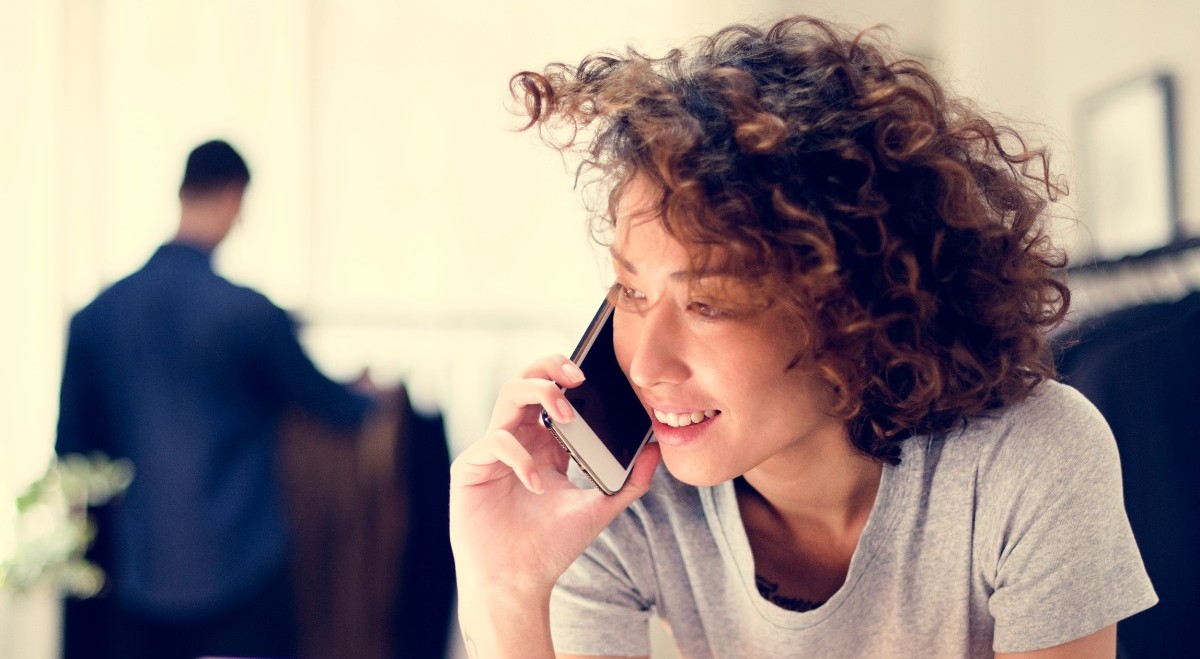 γυναίκα μιλά στο τηλέφωνο μποστά στο γραφείο της