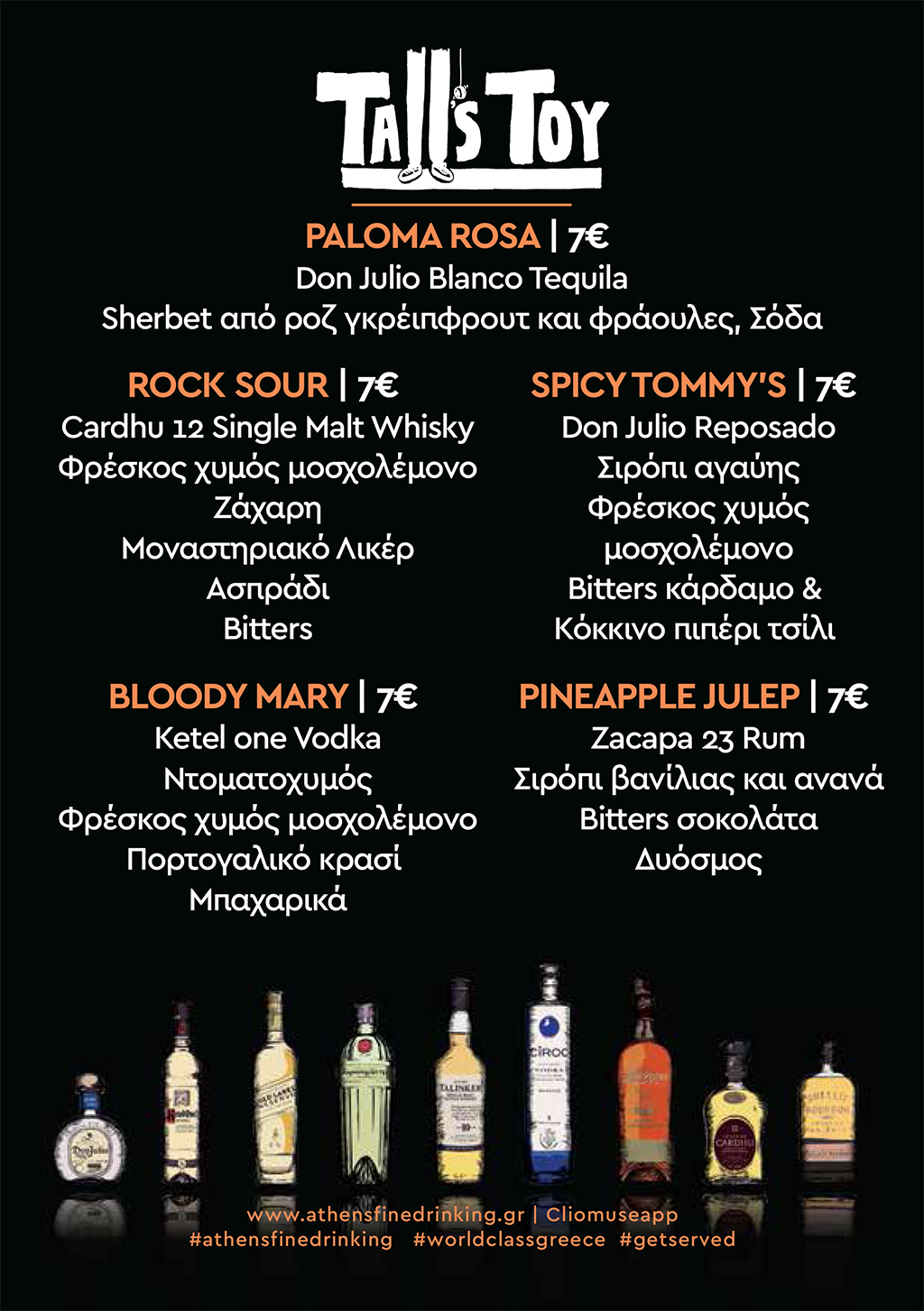 Για περισσότερες πληροφορίες σχετικά με τα 32 συνεργαζόμενα bars και το σύνολο των επιλογών που προσφέρουν στο menu τους, επισκεφτείτε το: www.athensfinedrinking.gr ή κατεβάστε δωρεάν την εφαρμογή cliomuse app bit.ly/cliomuse και αναζητήστε την διαδρομή Αthens Fine Drinking.