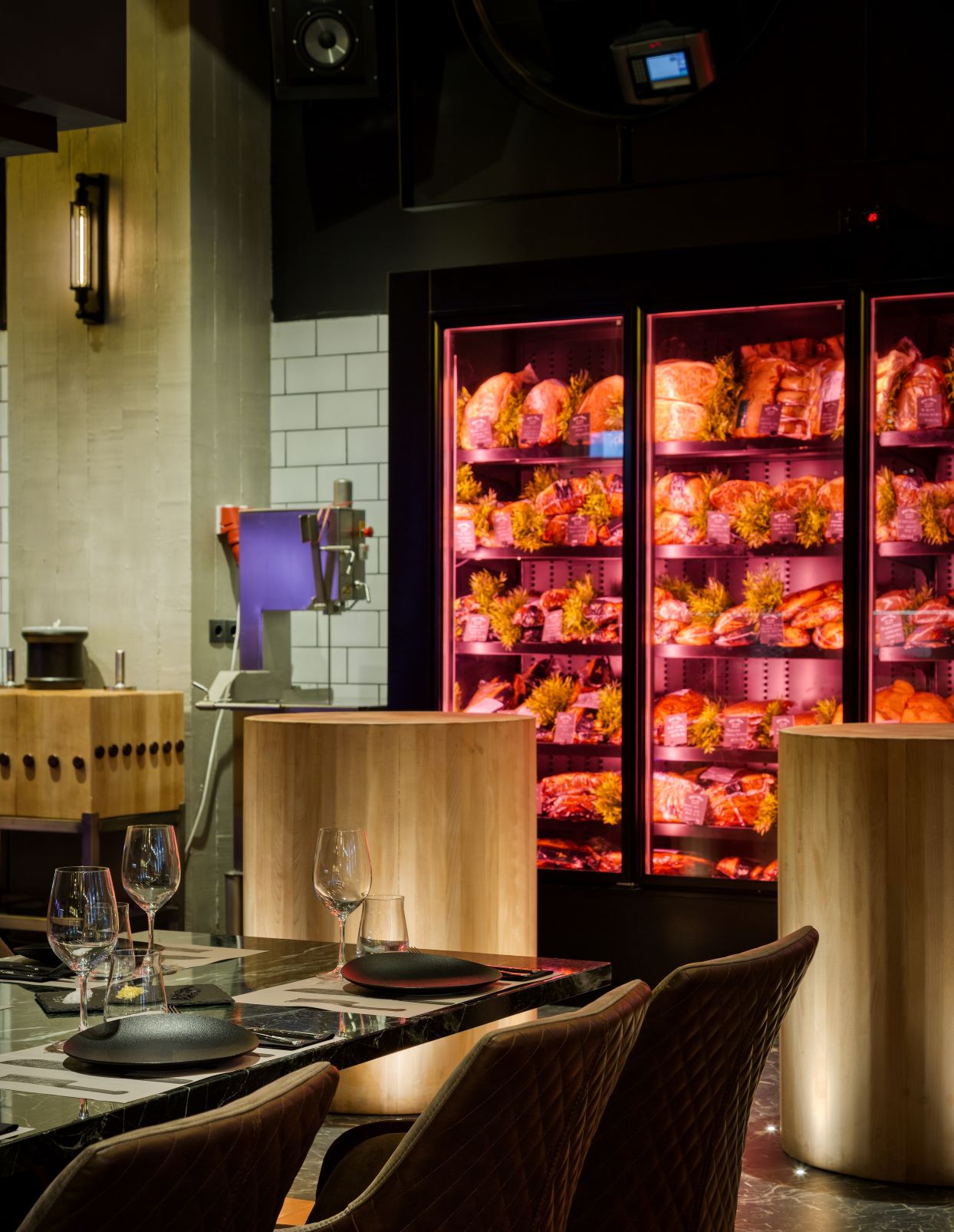 Ποιοτικά προϊόντα, γεύση, άρωμα, και φρεσκάδα είναι σημαντικά στοιχεία του φαγητού μας. Το μενού είναι σχεδιασμένο ώστε να μοιράζεται από όλο το τραπέζι και σερβίρεται αμέσως μετά την προετοιμασία του από τη κουζίνα. Τα περισσότερα πιάτα είναι φτιαγμένα έτσι ώστε να μπορούν να τα μοιραστούν δύο άτομα, ενώ το μέγεθος των πιάτων ποικίλει σε μικρό βαθμό. Προτείνουμε να ξεκινήσετε την εμπειρία σας με την επιλογή του κρέατος, όπου ο κρεοπώλης θα σας καθοδηγήσει στις βιτρίνες μας και θα σας βοηθήσει να επιλέξετε την κατάλληλη κοπή γι’ εσάς- η οποία θα ψηθεί και θα ξεκουραστεί’’ με τον καλύτερο τρόπο- και στη συνέχεια