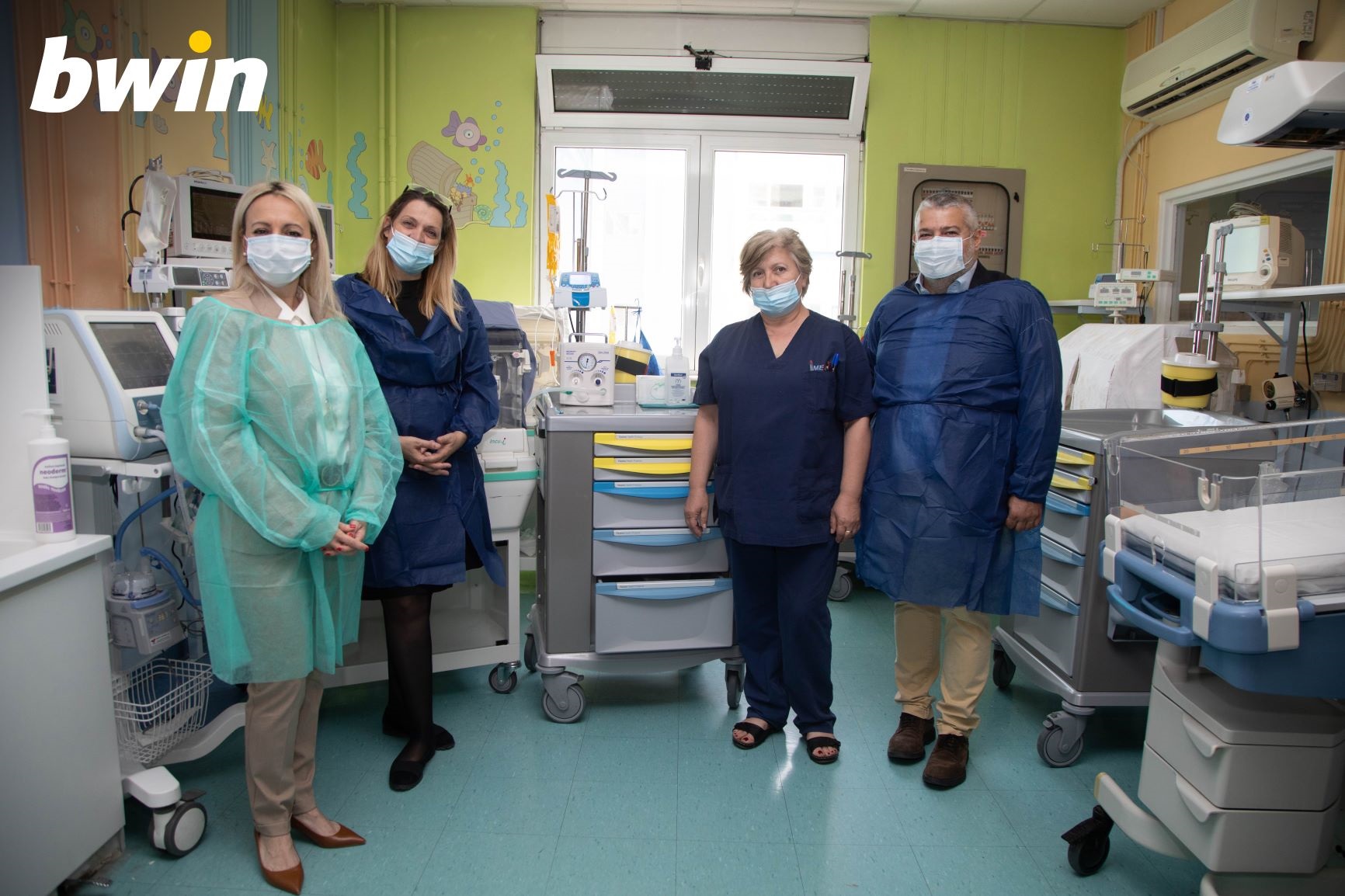 Η bwin στηρίζει έμπρακτα το έργο των Ιατρών και του Νοσηλευτικού προσωπικού στο Παίδων “Π. & Α. Κυριακού”. Στο πλαίσιο των πρωτοβουλιών κοινωνικής ευθύνης που υλοποιεί, ενισχύει το Νοσοκομείο με την παροχή ειδικών μηχανημάτων, τα οποία βοηθούν την αναπνοή των νεογνών.