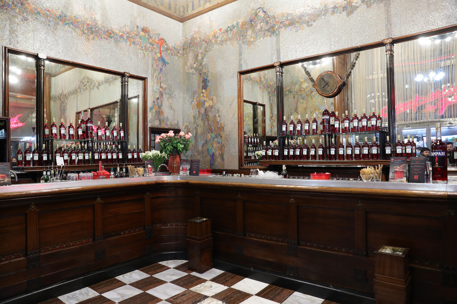 Καταλήξαμε στο (αν πας Μιλάνο, πρέπει οπωσδήποτε να το επισκεφτείς) bar Camparino, στην είσοδο της περίφημης Galleria Vittorio Emanuele.