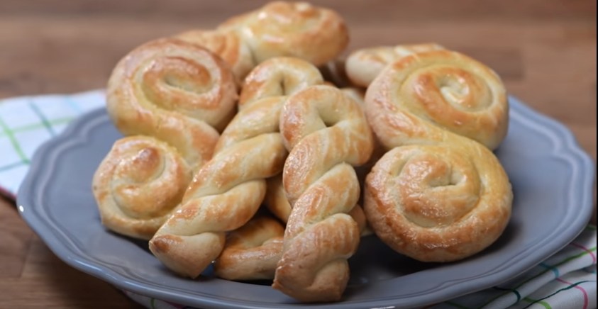 Αφού κρυώσει, την χωρίζουμε σε μικρότερα κομμάτια και ξεκινάμε το πλάσιμο. Ρολάρουμε τη ζύμη στον πάγκο, μέχρι να έχουμε μακρόστενα κορδόνια. Τα διπλώνουμε στη μέση και τα στρίβουμε σε πλεξούδα ή σε ό,τι σχήμα θέλουμε. Είναι σημαντικό όλα τα σχήματα να έχουν περίπου το ίδιο μέγεθος για να ψηθούν στον ίδιο χρόνο.