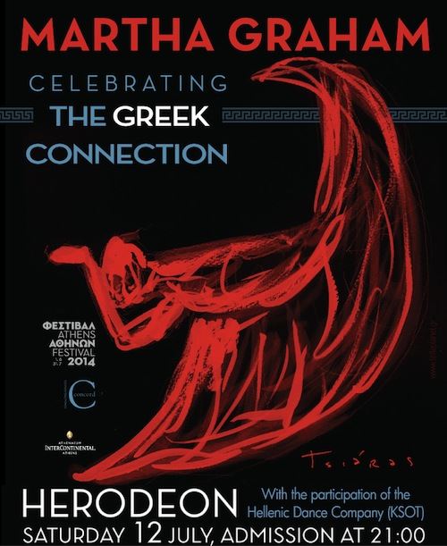 Το Σάββατο 12 Ιουλίου, η Martha Graham Dance Company θα ολοκληρώσει την περιοδεία της στην Ελλάδα πραγματοποιώντας μία μοναδική παράσταση στο Ηρώδειο, στο πλαίσιο του Φεστιβάλ Αθηνών, υπό το φως της Πανσελήνου, κάτω από τον έναστρο Αττικό ουρανό.
