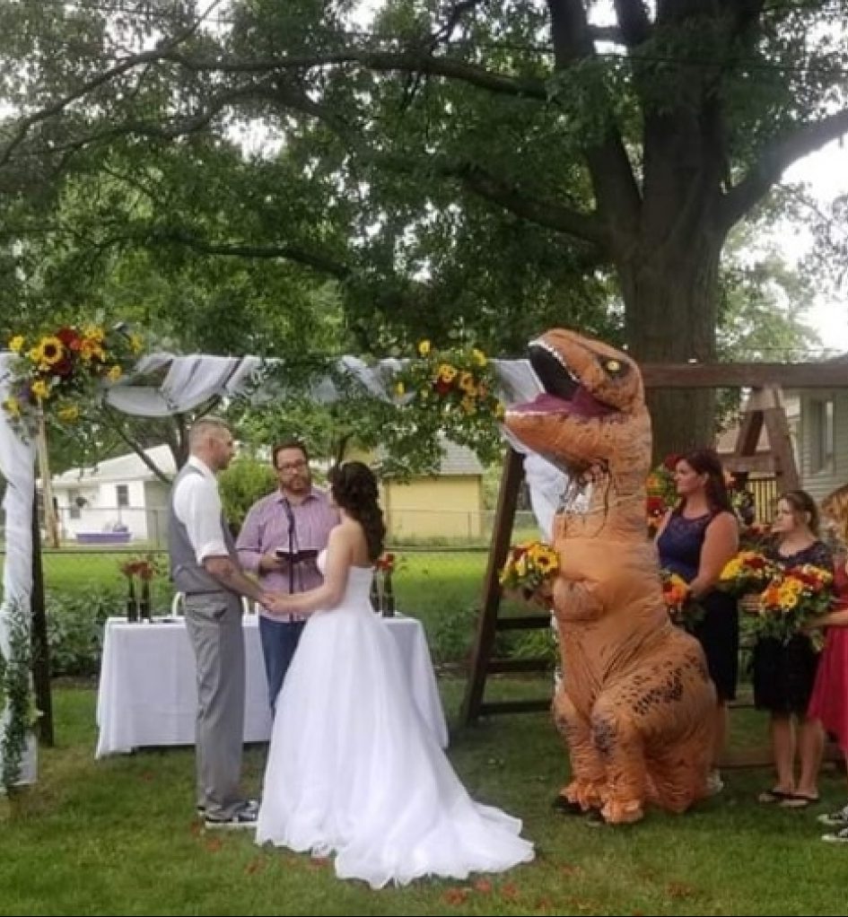 Άραγε πως θα αντιδρούσατε αν η αδερφή σας ερχόταν ντυμένη στο γάμο σας ως Τυραννόσαυρος;