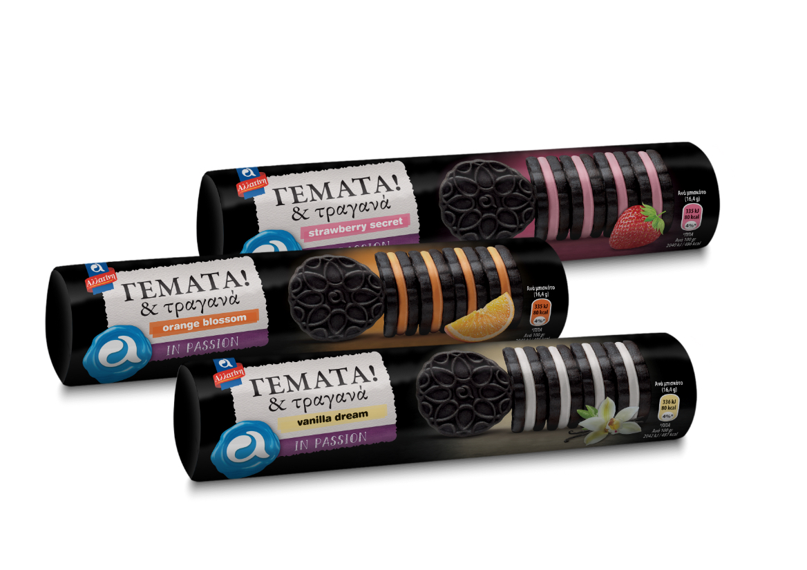 Τα νέα Αλλατίνη ΓΕΜΑΤΑ & ΤΡΑΓΑΝΑ!, είναι ένας μοναδικός συνδυασμός τραγανού μπισκότου με κακάο, με πλούσια γέμιση, γεύσεις κι αρώματα σε 3 απολαυστικούς γευστικούς συνδυασμούς: Strawberry Secret με γέμιση φράουλας, Vanilla Dream με γέμιση βανίλιας και Orange Blossom με γέμιση πορτοκαλιού.