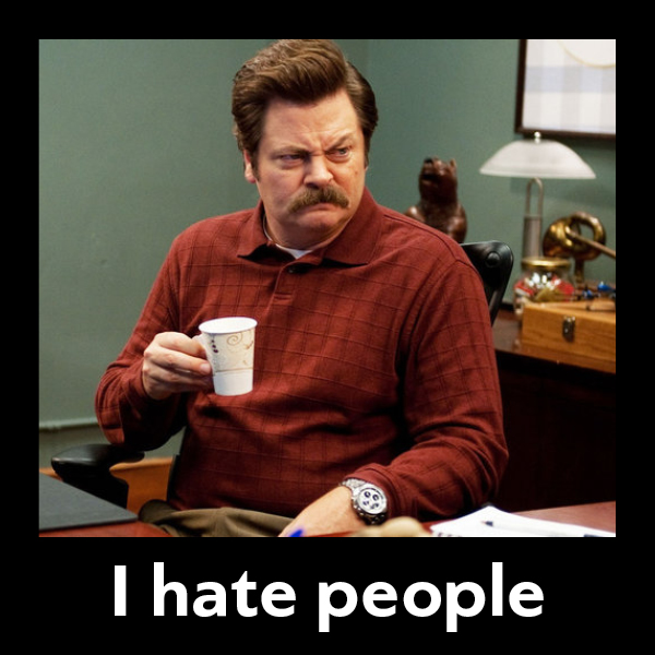 Η υπερασπιστική γραμμή του αντικοινωνικού, λέει ότι δεν θα αντιπαθούσε τόσους ανθρώπους, αν αυτοί οι άνθρωποι δεν ήταν ενοχλητικοί. Αυτός έχει δεχτεί ότι η καθημερινότητά του θα είναι γεμάτη με υποχρεωτικές κοινωνικές συναναστροφές. Αν και οι γύρω του δεχτούν ότι έχει δικαίωμα να μην τις απολαμβάνει, ίσως όλα θα ήταν λίγο καλύτερα. Αλλά παραείναι αντικοινωνικός για να μπει σε συζητήσεις να το εξηγήσει. Obviously.