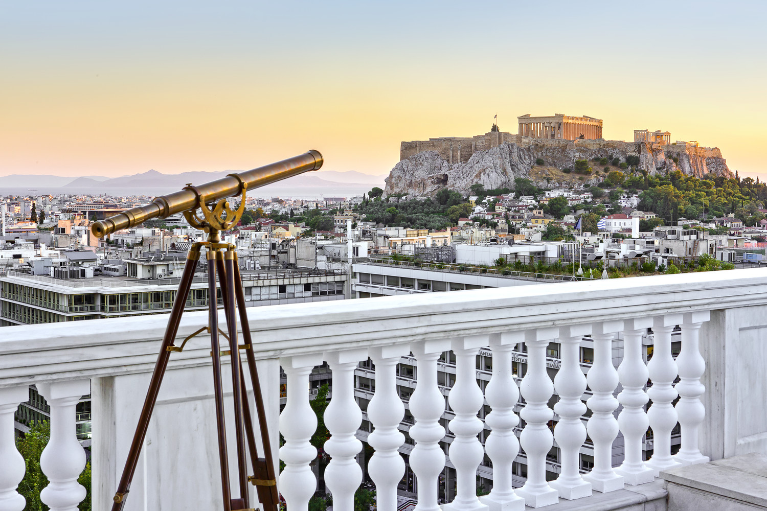 Ηεμπειρία στην PenthousesuiteτουKingGeorgeολοκληρώνεται μεανεκτίμητο προνόμιο την καθηλωτική θέα στην Ακρόπολη και την πόλη της Αθήνας.