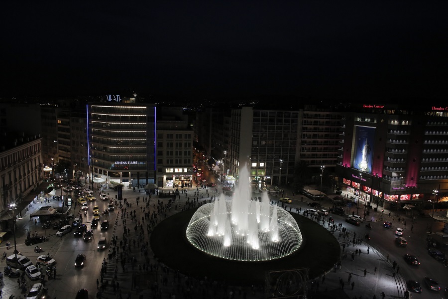 Με τη λειτουργία και φωταγώγηση του σιντριβανιού της, η ριζικά ανακατασκευασμένη πλατεία Ομονοίας, παραδόθηκε στο σύνολό της, στους κατοίκους και επισκέπτες της Αθήνας.