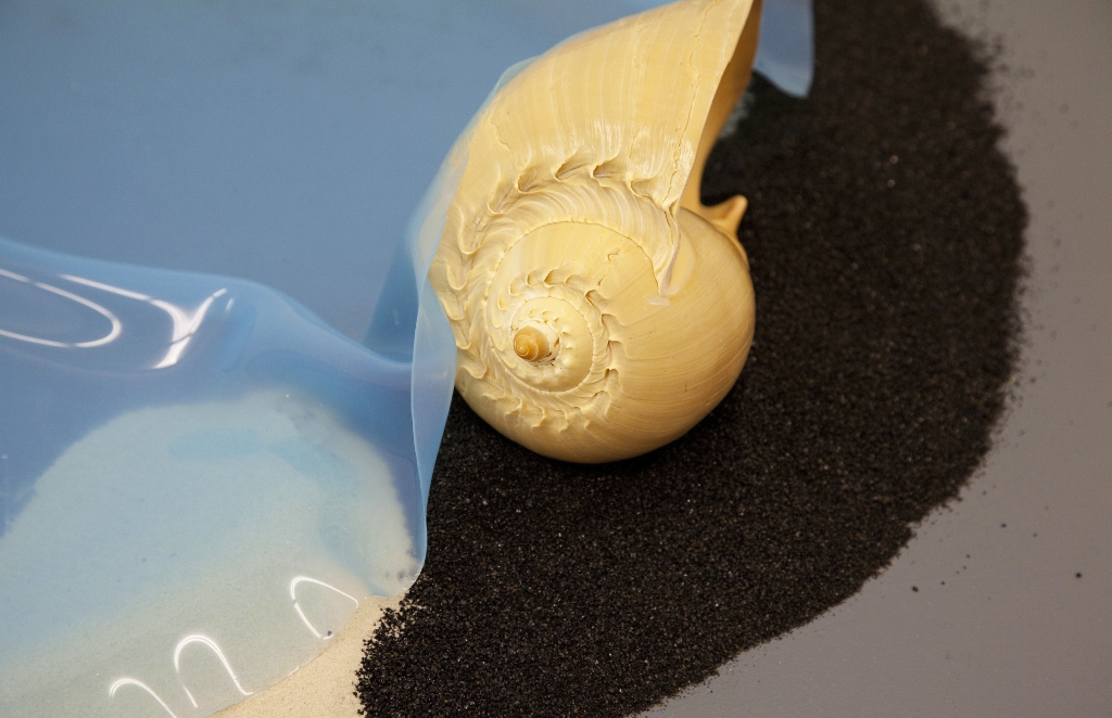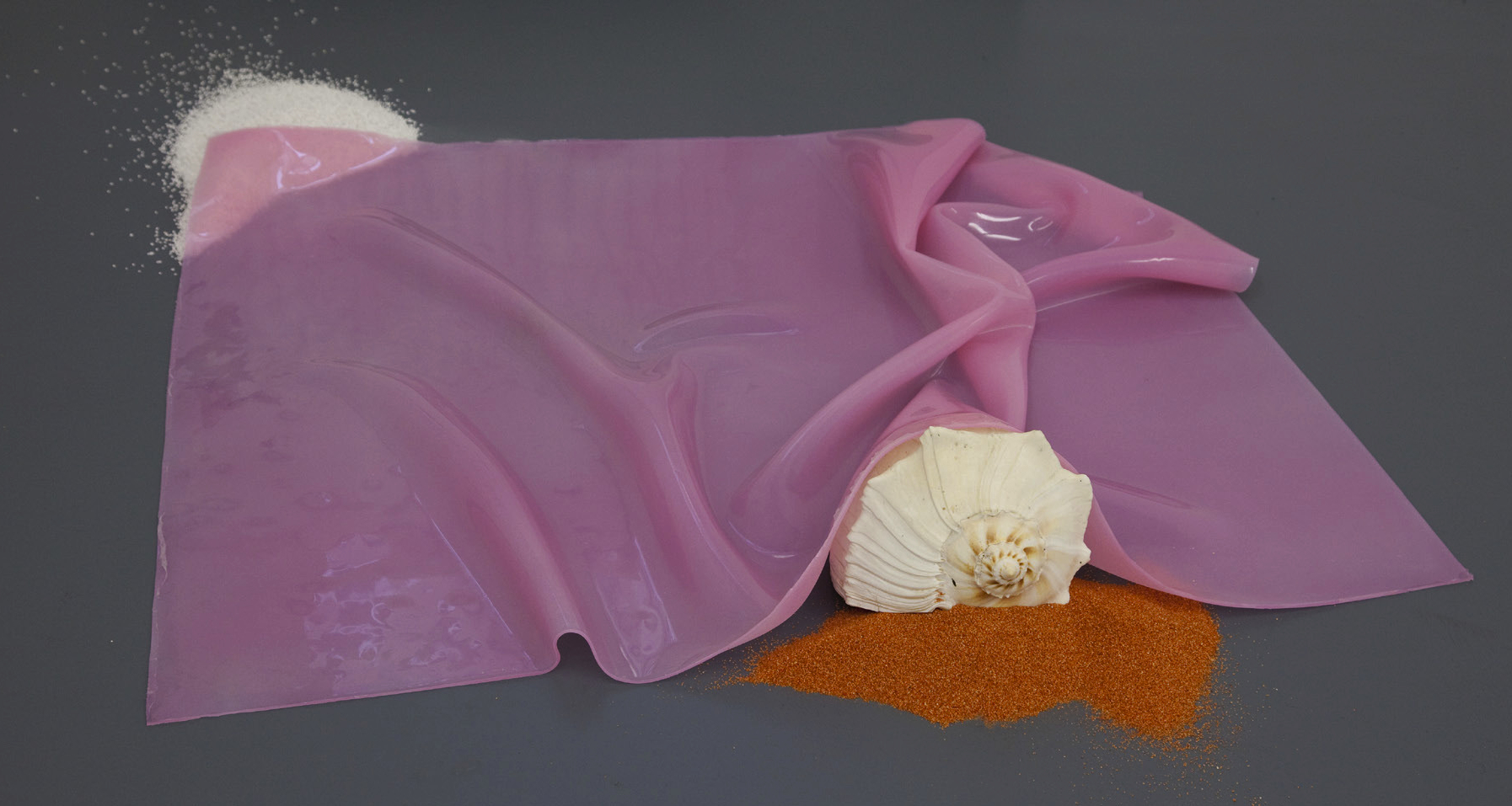 Φύλλα σιλικόνης, κοχύλια και άμμος δημιουργούν σκηνικά στην ενότητα γλυπτών δαπέδου “Intérieures”, στα οποία συγχωνεύονται τα φαινομενολογικά υλικά με τον εσωτερικό κόσμο της φαντασίας. Ο τίτλος των έργων είναι μία αλληγορία για τα εσωτερικά όργανα, το δέρμα και το σώμα. Οι στρώσεις της γυαλιστερής απαλής σιλικόνης δημιουργούν πτυχές και εσοχές που παραπέμπουν στον κυματισμό της θάλασσας αλλά και στο ανθρώπινο σώμα, όπως άλλωστε και οι οπές των κοχυλιών. Τα γλυπτά φαντάζουν ως αντικείμενα πόθου, που επιχειρούν να εκφράσουν την δική τους εκδοχή μίας εσωτερικότητας σωματικής αλλά και πνευματικής.