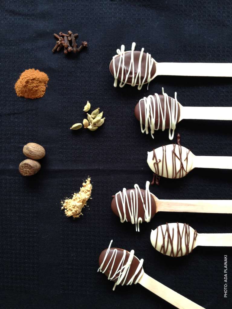 «Αυτά τα λαχταριστά κουταλάκια σοκολάτας ταιριάζουν θαυμάσια μέσα σε μια καυτή κούπα καφέ, ή ένα ζεστό ποτήρι γάλα. Αρωματισμένα με διάφορα μπαχαρικά όπως κανέλα, γαρίφαλο, τζίντζερ, μοσχοκάρυδο, ή ακόμη, και γιατί όχι, με καυτερό τσίλι, θα δώσουν μια εξωτική νότα στον καφέ ή το γάλα σου. Λιώνουν σιγά-σιγά και απολαυστικά, αρκεί να μην μπεις στον πειρασμό να τα φας μονομιάς! Βάλτα σε σακουλάκια ένα-ένα και δέστα με όμορφες κορδέλες. Μια πολύ ωραία ιδέα, για να τα δωρίσεις σε αυτούς που αγαπάς». Η Άντα Πλαϊνάκη μέσα από το blog της, New Sweets on the Blog, μας δίνει και αυτή την Παρασκευή την πιο γλυκιά συνταγή!
