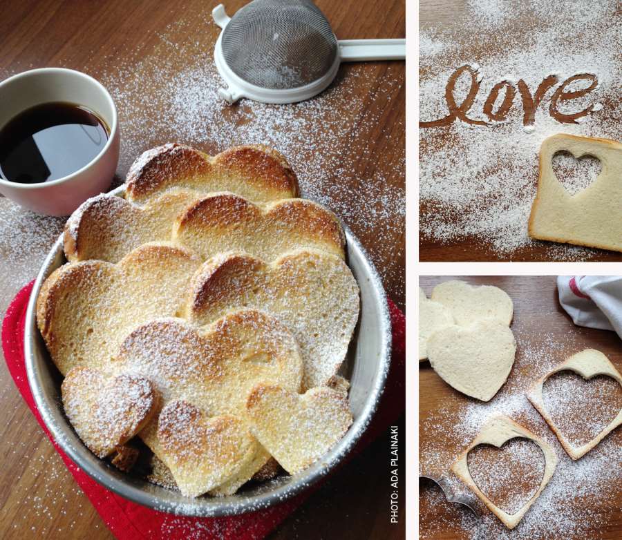 «Δεν πειράζει αν δεν προλάβεις να φτιάξεις σήμερα πρωινό στον καλό σου. Όλο το Σαββατοκύριακο έχουμε γιορτή, άσε που ως γνωστόν, οι ερωτευμένοι γιορτάζουν συνεχώς, δεν χρειάζονται ειδική αφορμή. Γαλλικά τόστ, λοιπόν, εύκολα, γρήγορα, νόστιμα. Και αν θες, και παιχνιδιάρικα κιόλας. Το καλύτερο; Δεν θα τα τηγανίσουμε, θα τα ψήσουμε στο φούρνο! Συνόδεψέ τα με μέλι, μαρμελάδα, βούτυρο, λιωμένη κουβερτούρα, ή απλά, πασπάλισέ τα με άχνη. Υπέροχα!» Η Άντα Πλαϊνάκη μέσα από το blog της, New Sweets on the Blog, μας δίνει και αυτή την Παρασκευή την πιο γλυκιά συνταγή!