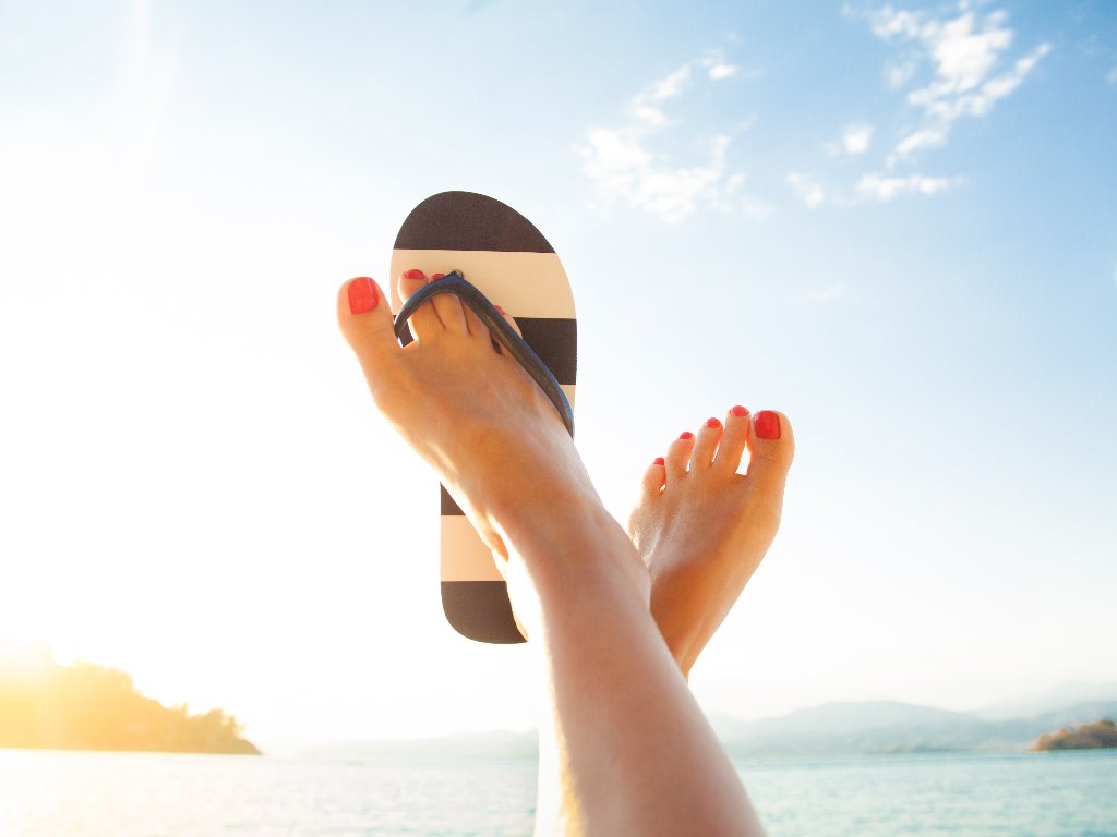Εάν επιλέξετε σαγιονάρες, σανδάλια ή πέδιλα προτιμήστε με χοντρή σόλα ώστε να απορροφούν τους κραδασμούς και να κρατούν το πόδι σας ψηλότερα από το έδαφος αποφεύγοντας τα μικρόβια να εισχωρήσουν στο δέρμα σας.