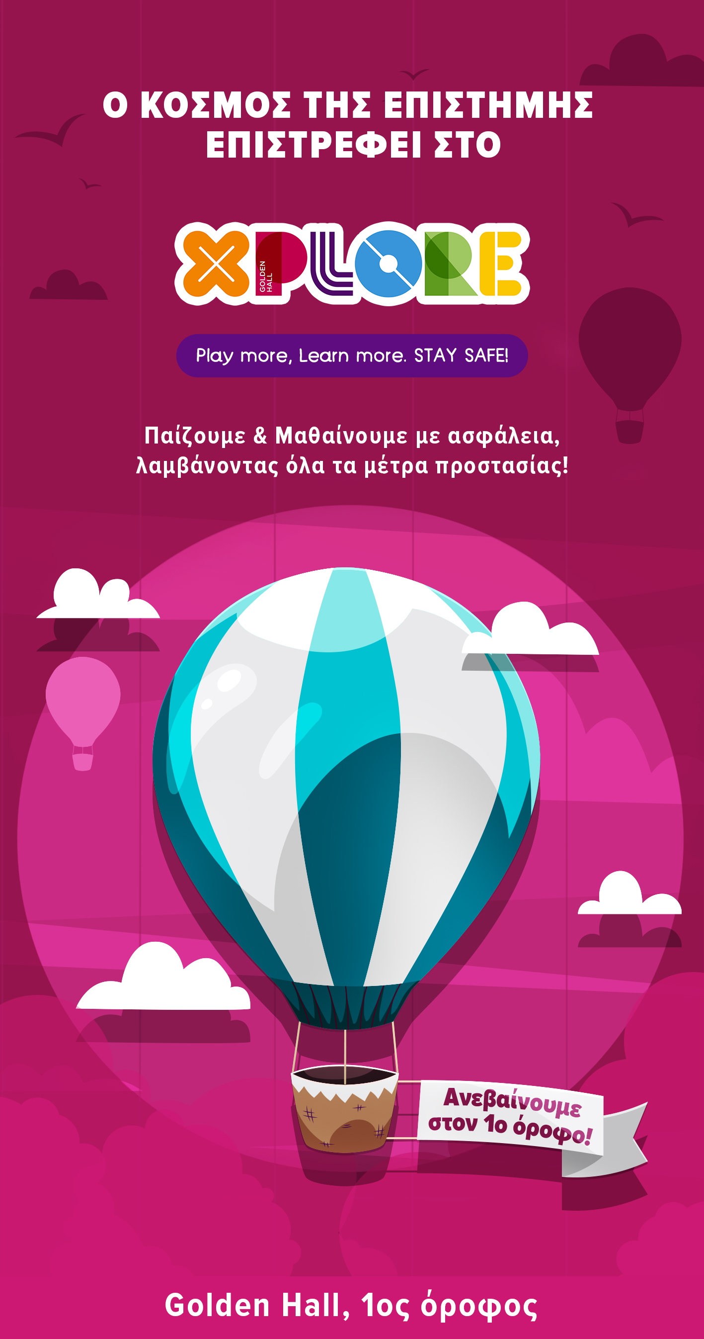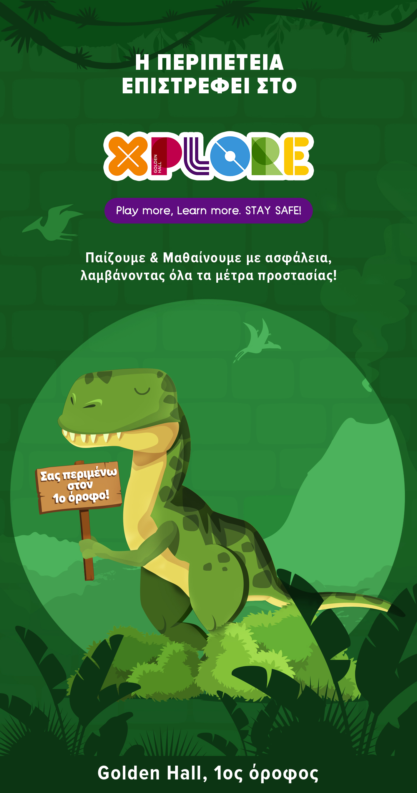 Ο μοναδικός προορισμός εκπαίδευσης και ψυχαγωγίας για όλη την οικογένεια, σας περιμένει στον νέο χώρο καταστημάτων του Golden Hall στον 1ο όροφο, για να ζήσετε τις πιο αξέχαστες στιγμές, ασφαλώς… λαμβάνοντας όλα τα μέτρα ασφάλειας και προστασίας.