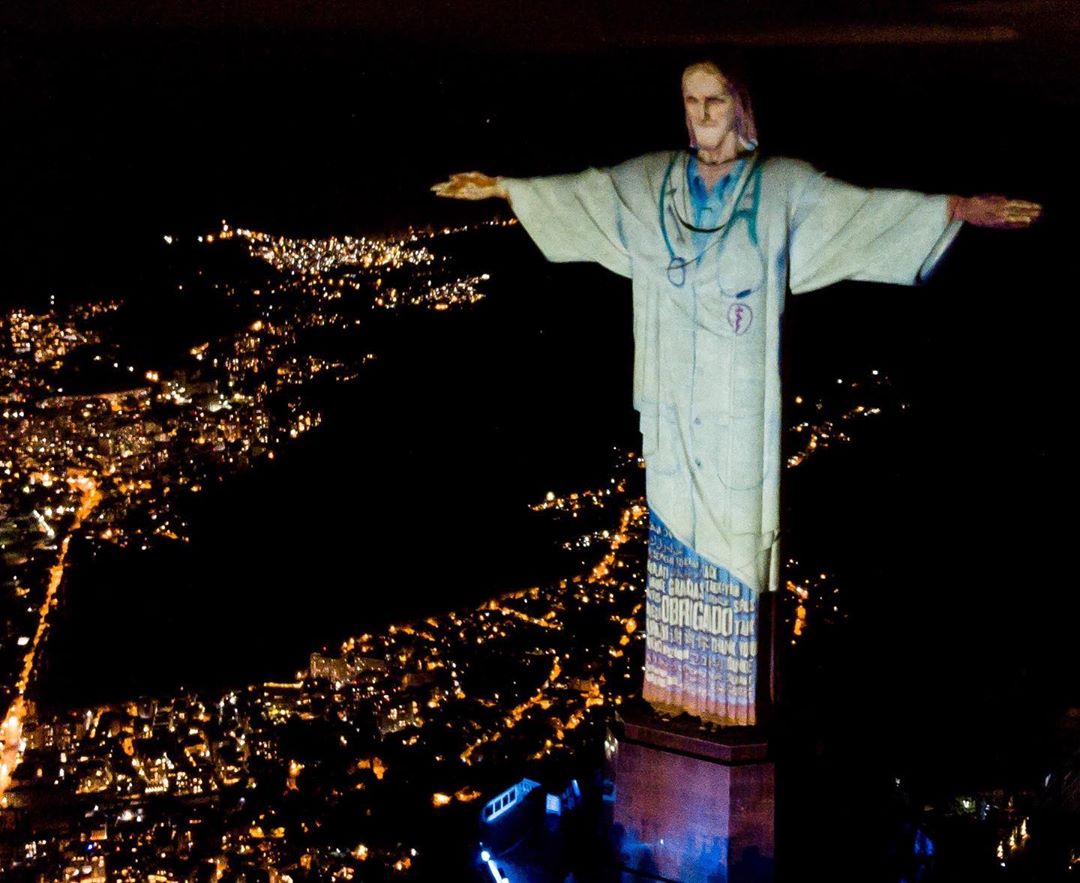 Ακριβώς αυτό σκέφτηκαν και στην Βραζιλία και αποφάσισαν να “ντύσουν” το άγαλμα του Ιησού που βρίσκεται στο Rio de Janeiro με στολή γιατρού ως μία ένδειξη ευγνωμοσύνης προς το ιατρικό προσωπικό. Στη συνέχεια, το άγαλμα φωταγωγήθηκε με τα χρώματα των σημαιών που ανήκουν στις χώρες που έχουν πληγεί περισσότερο από τον ιό.