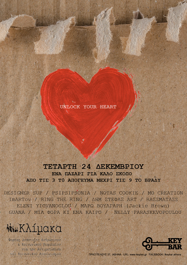 Η «Κλίμακα» το KeyBar και 13 καλλιτέχνες στις 24 Δεκεμβρίου, σε μια προσπάθεια να βοηθήσουν τους άστεγους της πόλης μας, διοργανώνουν ένα bazaar.