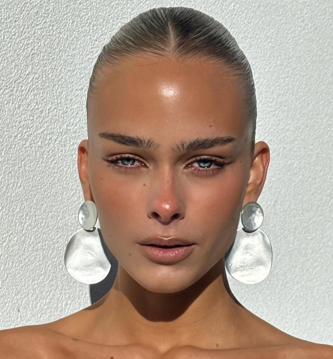 Όσον αφορά τα φρύδια, η έμφαση είναι στον ορισμό τους. Χτενισμένα προς τα πάνω, γεμισμένα με λεπτές, σαν microblading, πινελιές, και καλά σταθεροποιημένα. Δεν έχει σημασία αν είναι χοντρά ή λεπτά, αρκεί να έχουν παρουσία.