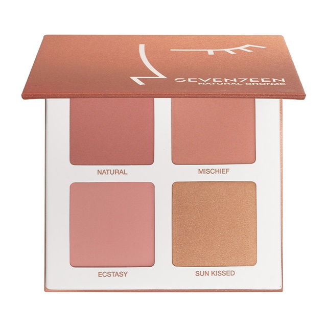 Η παλέτα Natural Bronze της Seventeen ταιριάζει στο look, γιατί αποτελείται από 3 ρουζ σε φυσικούς, ματ, ροζ τόνους και 1 bronzer για απαράμιλλη λάμψη, ενώ όλες οι αποχρώσεις της μπορούν να χρησιμοποιηθούν και σαν σκιές για μακιγιάζ χωρίς όρια.
