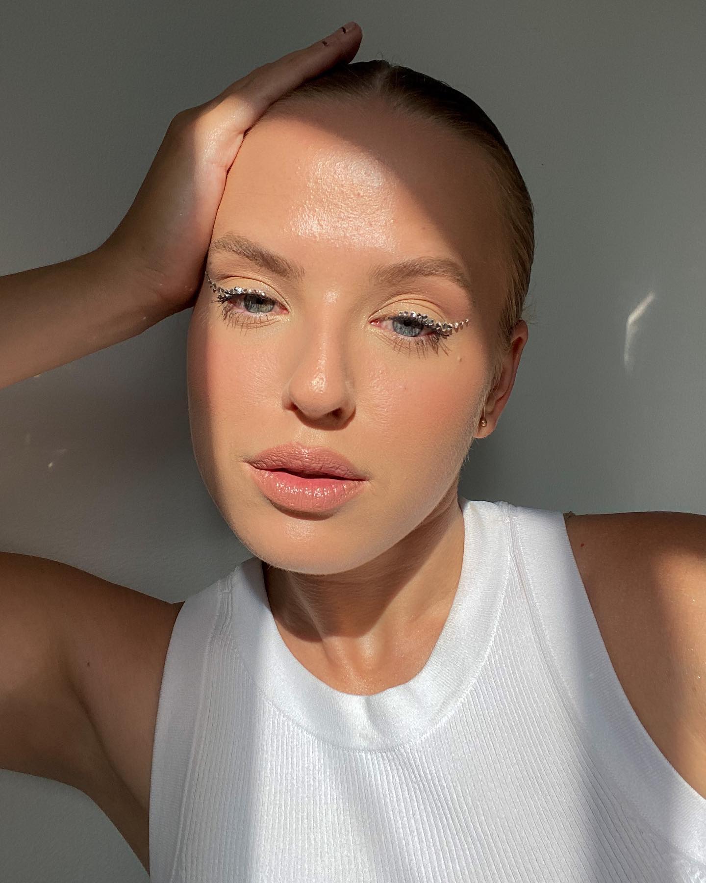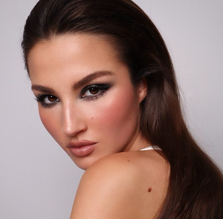 Αυτό το μακιγιάζ περιλαμβάνει ένα highlighter τόσο φωτεινό και λαμπερό, σχεδόν ιριδίζον. Το τέλειο παράδειγμα του πώς να χρησιμοποιούμε το shimmer για μια λάμψη που μοιάζει να βγαίνει από μέσα μας – αέρινη, σχεδόν ονειρική.