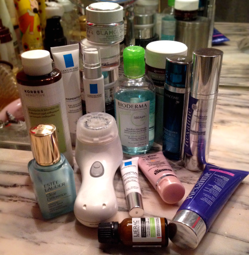 Εδώ έρχονται τα καθαριστικά, οι λοσιόν, το clarisonic (αναφέρομαι ονομαστικά γιατί δεν υπάρχει δεύτερο), τα serum, οι κρέμες ματιών, οι μάσκες, τα sos προϊόντα… ναι τα βάζω όλα και μέσα σε ένα 24ωρο μέτρησα πως χρησιμοποιώ 15 προϊόντα στο πρόσωπό μου. Και αναρωτιέμαι: μήπως το παρακάνω; Δείτε κι εσείς…