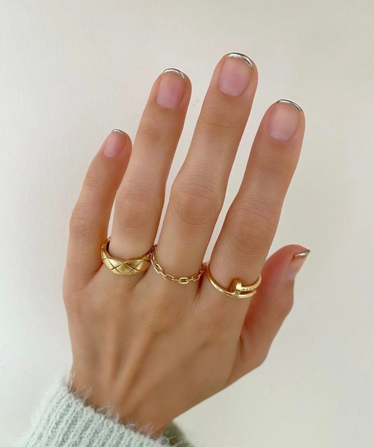 Το νέο γαλλικό είναι καθαρό, μίνιμαλ και υπερβολικά διακριτικό, μ’ ένα touch έκπληξης που κρύβεται στο τελείωμά του. Με λίγα λόγια, η κλασική άσπρη γραμμή αντικαθίσταται από μία πιο λεπτή και πιο ιδιαίτερη, η οποία παίζει είτε στις μεταλλικές αποχρώσεις, είτε στα πιο έντονα χρώματα.
