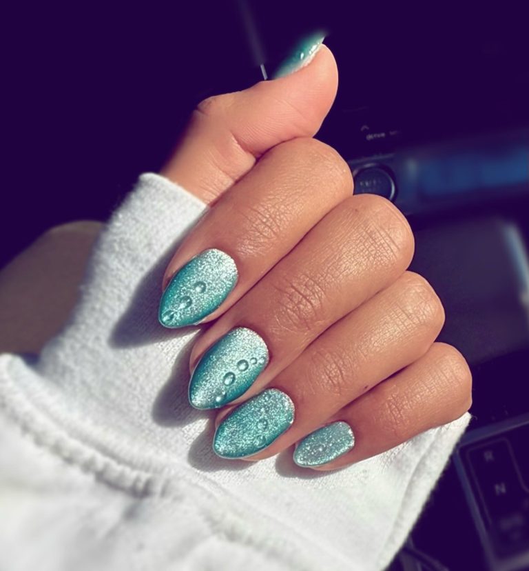 Το γκλίτερ μόνο σε μισό νύχι δημιουργεί ένα διασκεδαστικό αλλά ταυτόχρονα κομψό αποτέλεσμα, που είναι πολύ του γούστου μας. Και δεν θα μπορούσε να είναι πιο εύκολο να το πετύχετε. Ξεκινάτε με μια βάση βερνικιού και περιμένετε να στεγνώσει τελείως. Έπειτα, τοποθετείτε μια ταινία για νύχια στη μέση κάθε νυχιού. Στη συνέχεια, βάφετε με γκλίτερ βερνίκι τη μία πλευρά του νυχιού. Όταν το βερνίκι στεγνώσει, αφαιρείτε προσεκτικά την ταινία και ολοκληρώνετε με ένα topcoat.