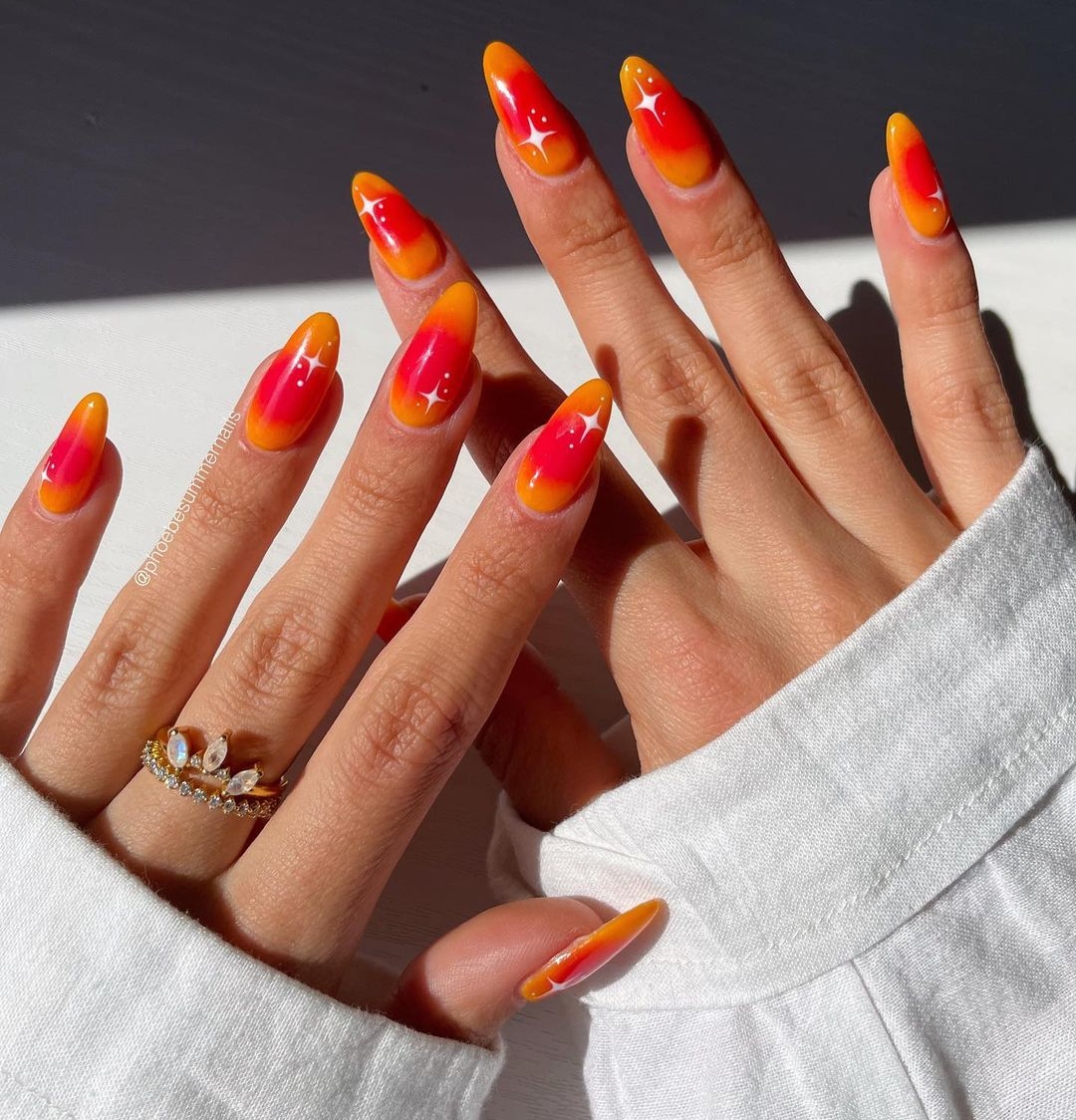 Το καλοκαίρι έφερε μαζί του μερικές ενδιαφέρουσες τάσεις στα σχέδια, όπως τα νύχια της αύρας που εκτοξεύτηκε στα ύψη. Σχεδιασμένο για να αναπαράγει το ουράνιο τόξο των ενεργειακών χρωμάτων που λέγεται ότι πηγάζει από το σώμα, το ονειρικό αυτό σχέδιο εστιάζει συχνά σε βαθύ μπλε, πλούσιο μωβ ή φωτεινό πράσινο. Το πορτοκαλί, ωστόσο, μπορεί να είναι εξίσου εντυπωσιακό. Αντιπροσωπεύοντας την υγεία και την ευτυχία, τα νύχια με πορτοκαλί αύρα είναι η επιτομή της διάθεσης.