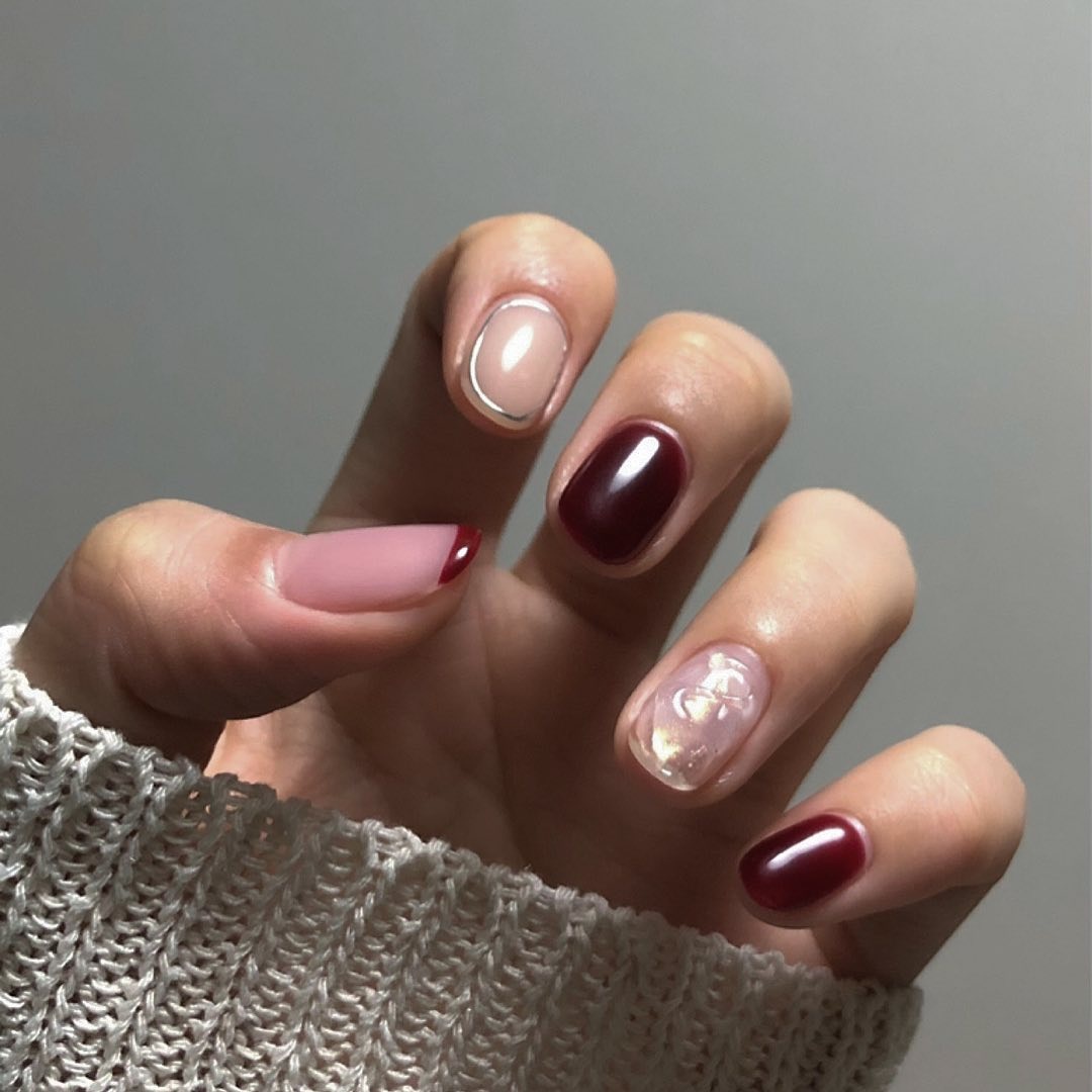 Όταν δεν μπορείτε να διαλέξετε ανάμεσα σε ένα κλασικό κόκκινο ή σε ένα καφέ σοκολατί βερνίκι, δοκιμάστε μια σέξι απόχρωση σαν αυτή, το αγαπημένο βουργουνδί, συνδυάζοντάς το με ένα γυαλιστερό top coat. Είναι μια υπέροχη πρόταση αν αγαπάτε και τα κοντά νύχια.