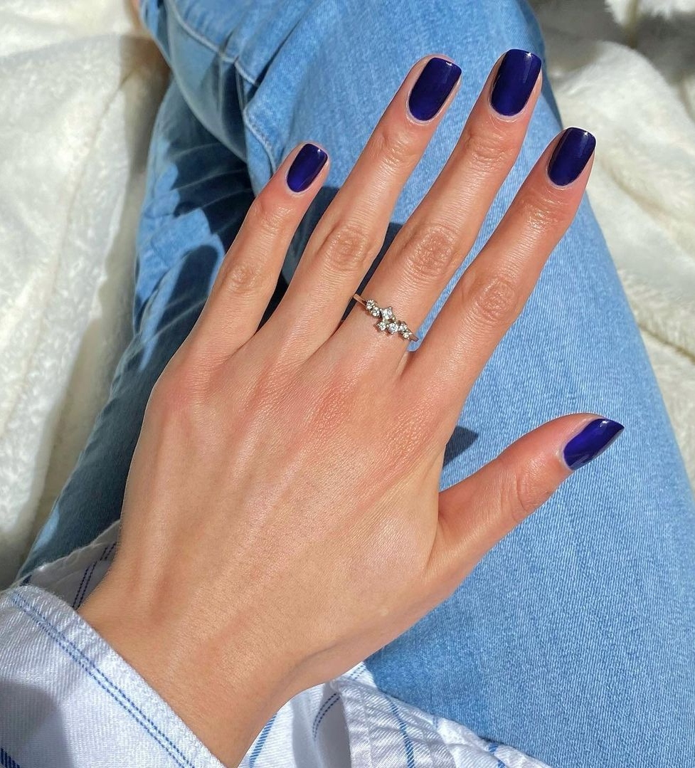 Ναι, τα squoval νύχια είναι και πάλι δημοφιλή. Αλλά αν διστάζετε να ξαναζήσετε αυτή την τάση, επιλέξτε ένα απλό navy μανικιούρ που είναι πλούσιο και αδιαφανές. Μην ξεχάσετε να τελειώσετε με ένα γυαλιστερό top coat για λάμψη σαν λουστρίνι.