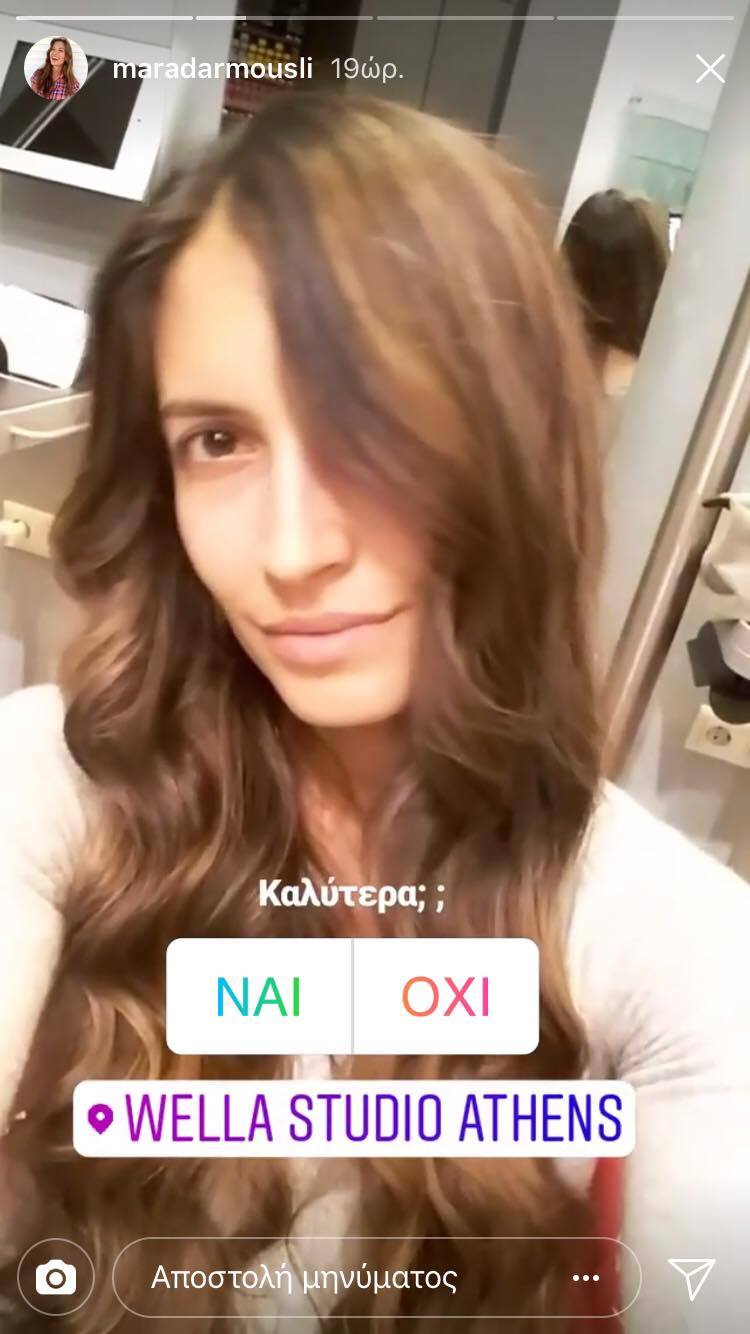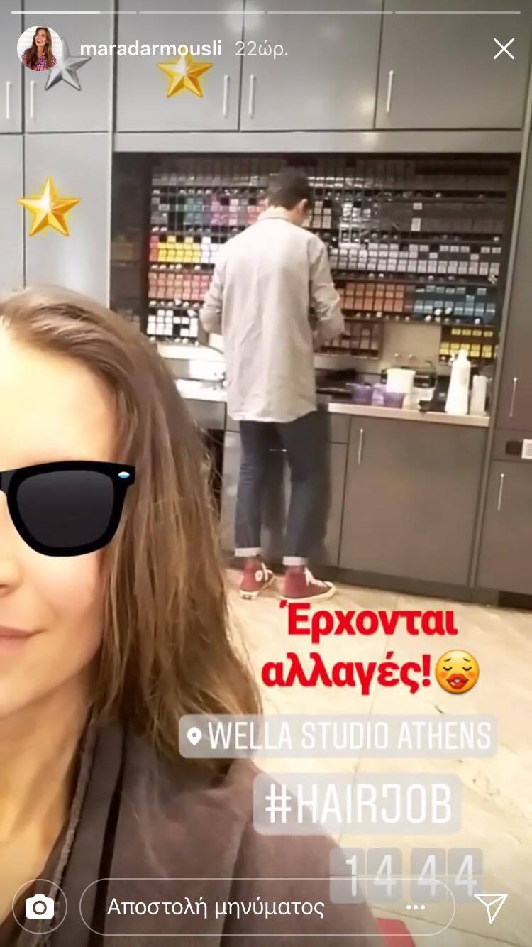 Με τον ερχομό του χειμώνα, φαίνεται πως ένιωσε έτοιμη να αλλάξει ξανά το look της και έτσι επισκέφτηκε το Wella Studio Athens. Φυσικά, κατέγραψε την στιγμή με το κινητό της και ανέβασε το απαραίτητο story, γράφοντας «Έρχονται αλλαγές!».