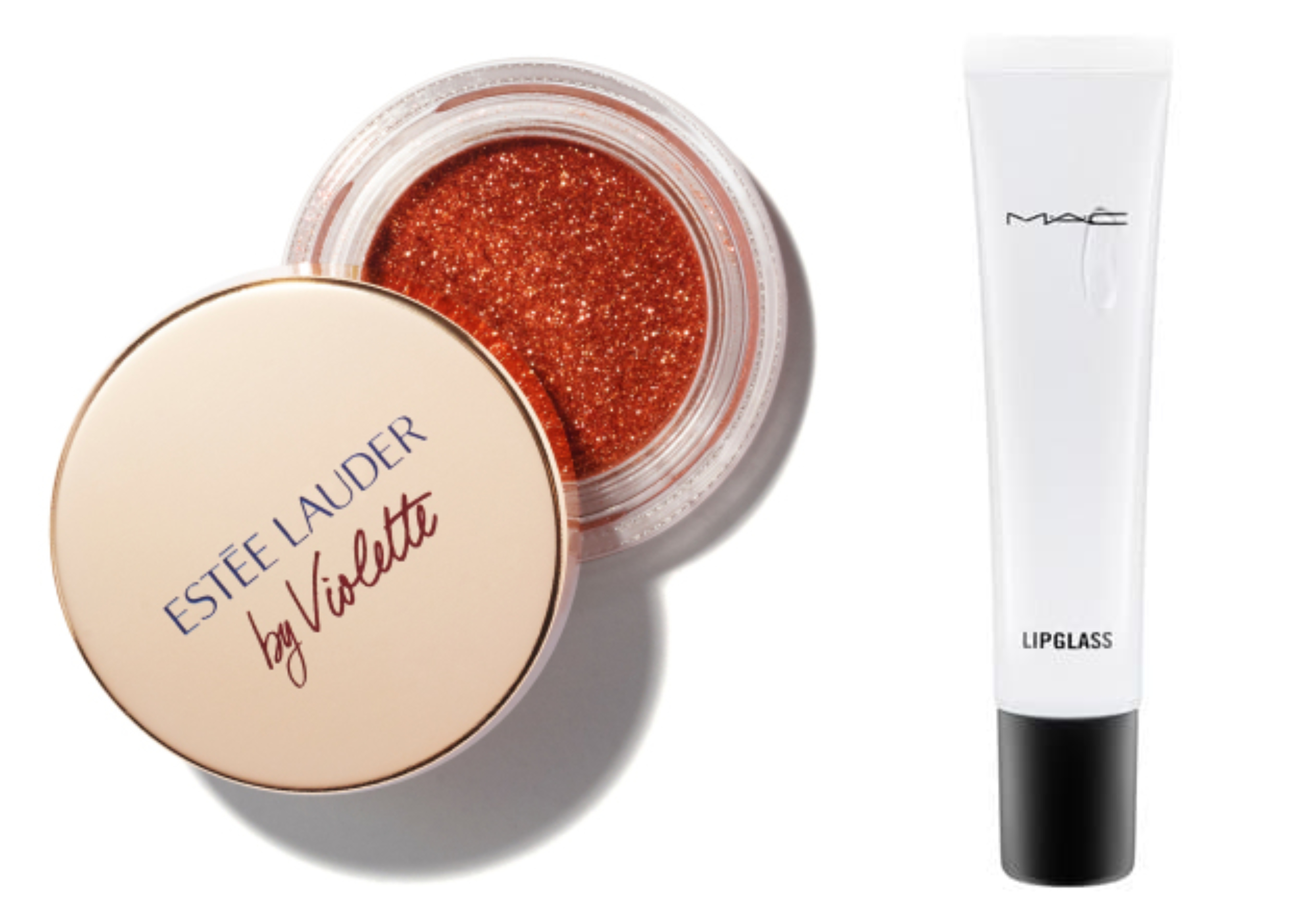 Εμείς λατρεύουμε το διάφανο Lipglass Clear της MAC γιατί είναι super ελαφρύ και το χρώμα του Burning Star Glitter Pot από τη συλλογή Burning Star by Violette της Estee Lauder.