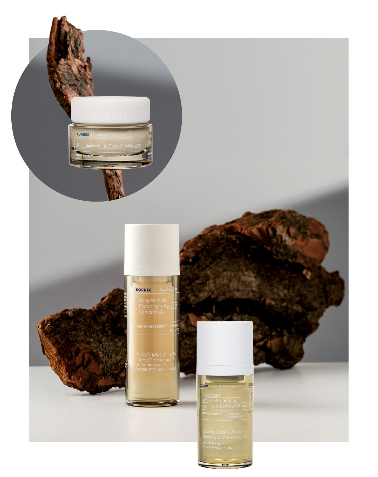 H Korres τοποθετείται απέναντι στον υπέροχο κύκλο ζωής της σύγχρονης γυναίκας σημειώνοντας κάτι πολύ ενδιαφέρον: «Η σύγχρονη γυναίκα ακολουθεί την ίδια πορεία που ακολουθεί η φύση. Όπως η φύση γεννιέται, μεγαλώνει, ωριμάζει και παραμένει ζωντανή, με εξαιρετική δύναμη και επιμονή, ξεπερνώντας τις αντιξοότητες, έτσι και η γυναίκα γιατί να σταματάει στην περίοδο της εμμηνόπαυσης; Μπορεί να συνεχίσει να είναι παραγωγική, ενεργή, όμορφη και με αυτοπεποίθηση… ασταμάτητη». Έτσι, εμπνέεται από τη δύναμη της φύσης της γυναίκας και δημιουργεί μια εκπληκτική σειρά περιποίησης για πρόσωπο και σώμα, ειδικά σχεδιασμένη για όλες τις γυναίκες μετά την εμμηνόπαυση. Μια σειρά βασισμένη στο εκχύλισμα φλοιού Λευκής Πεύκης και στην καινοτόμο τεχνολογία Meno-Reverse™, μια πλήρη προϊοντική συλλογή για το πρόσωπο και το σώμα, προσφέροντας ελαστικότητα, αναπλήρωση όγκου και ασταμάτητη ενδυνάμωση με φυσικές λύσεις που επαναφέρουν την όψη του δέρματος στην προεμμηνοπαυσιακή του κατάσταση.
