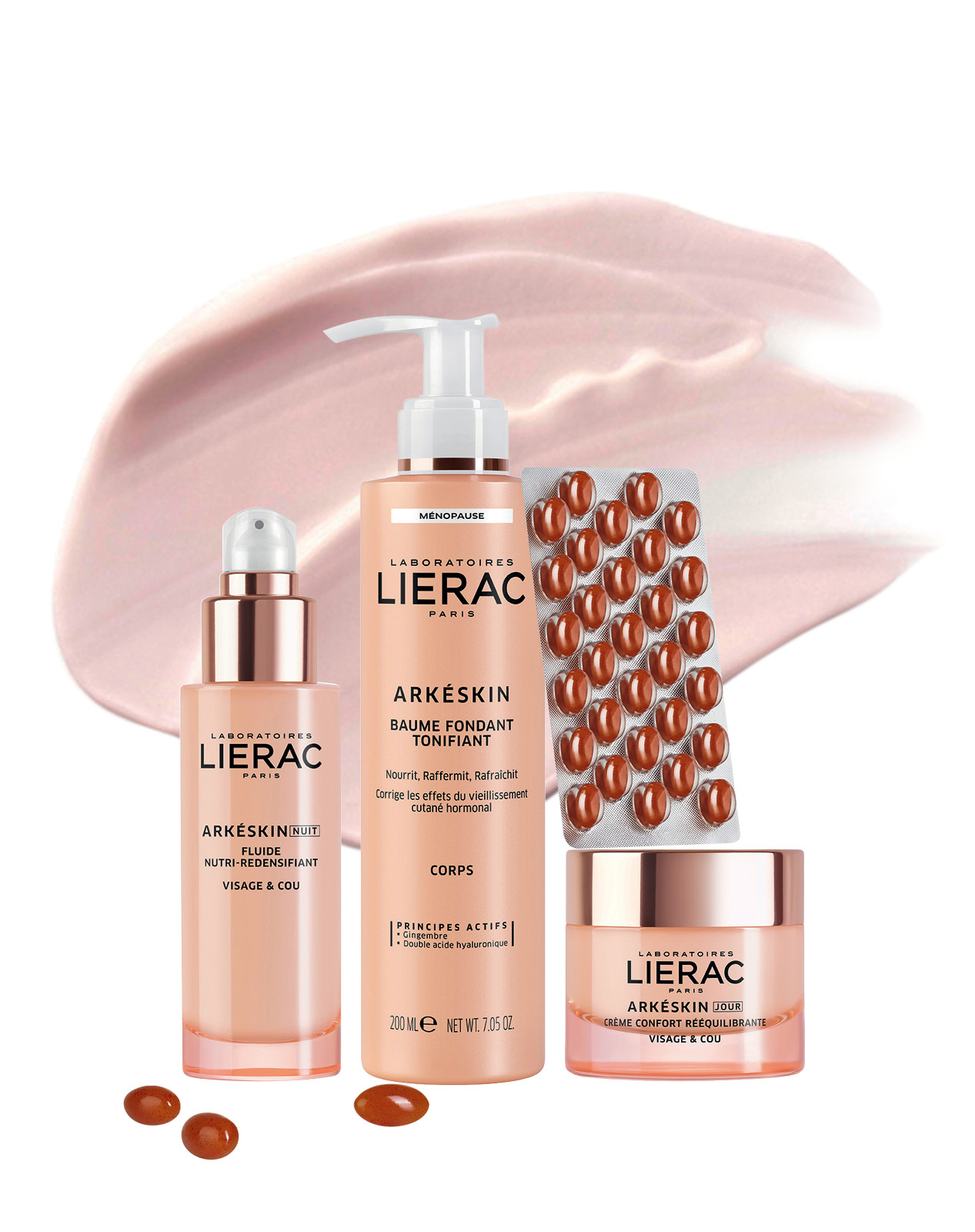 Το ριζοσπαστικό και πρωτοποριακό λανσάρισμα του πρώτου προϊόντος περιποίησης της επιδερμίδας για την εμμηνόπαυση των εργαστηρίων Lierac ήταν το 1996. Είκοσι πέντε χρόνια μετά, μέσω μιας νέας σύνθεσης, προσαρμοσμένης στις εξελίξεις της επιστήμης και στις προσδοκίες των σύγχρονων γυναικών, το θέμα προσεγγίζεται με μια εντελώς φρέσκια well-aging και anti-aging αίσθηση. H φράση «χωρίς ορμόνες» γίνεται σήμα κατατεθέν. Τα κατά 95% φυσικής προέλευσης συστατικά σηματοδοτούν μια νέα εποχή, που εστιάζει στη συναισθηματική υπεροχή. Έτσι, για την ανάπτυξη της ανανεωμένης σύνθεσης της Arkéskin, τα εργαστήρια Lierac συνεργάστηκαν στενά με την Dr. Cristina Maggioni, γυναικολόγο με ειδίκευση στις ορμονικές διαταραχές και διεθνώς αναγνωρισμένη ειδήμονα στον τομέα της Χρονοβιολογίας. Για την καλύτερη διαχείριση της εμμηνόπαυσης πρότεινε μια ολιστική προσέγγιση, η οποία συνδυάζει στοχευμένα προϊόντα αλλά και συναίσθηση, πάνω απ’ όλα, των ψυχολογικών αλλαγών της συγκεκριμένης περιόδου. Μιας περιόδου όπου υπάρχει ανάγκη να επανασυγχρονιστούν οι βιορυθμοί του δέρματος. Και η ομάδα της Lierac καλύπτει αυτή την ανάγκη με το παραπάνω. Πηγή έμπνευσης είναι η χρονοβιολογία, που δείχνει ότι διορθώνει την ορμονική γήρανση του δέρματος. Η σειρά περιλαμβάνει 4 προϊόντα με συμπληρωματική δράση για ενισχυμένη αποτελεσματικότητα. Η απαλή, δροσιστική υφή της κρέμας ημέρας με υαλουρονικό και τονωτικό άρωμα τριαντάφυλλου, η λεπτόρρευστη κρέμα νύχτας με τη μεταξένια αίσθηση, το balm σώματος που μετατρέπεται σε απαλή κρέμα με το μασάζ και έχει ένα καταπραϋντικό άρωμα λωτού, αλλά και οι κάψουλες διπλής δράσης που προσφέρουν υπέροχο δέρμα και συνολική ευεξία, αντιμετωπίζουν τα συμπτώματα εμμηνόπαυσης και βελτιώνουν σημαντικά την επιδερμίδα.