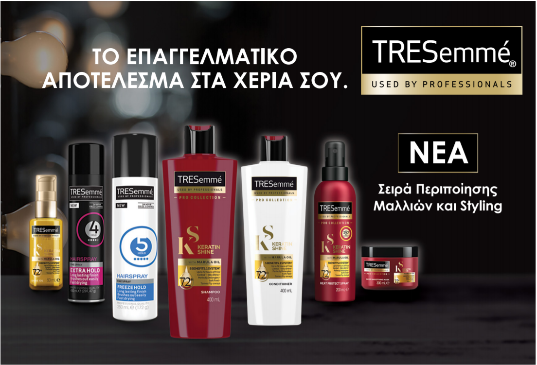 Το TRESemmé, η νέα σειρά περιποίησης μαλλιών και styling, έρχεται στην Ελλάδα και χαρίζει το επαγγελματικό αποτέλεσμα στα χέρια κάθε σύγχρονης γυναίκας! Η νούμερο 1 μάρκα περιποίησης μαλλιών της Αμερικής είναι εδώ, απευθείας από τα backstage της Εβδομάδας Μόδας της Νέας Υόρκης, για να εμπνεύσει κάθε γυναίκα να νιώσει γεμάτη αυτοπεποίθηση και να κάνει την παρουσία της αισθητή σε κάθε της βήμα!