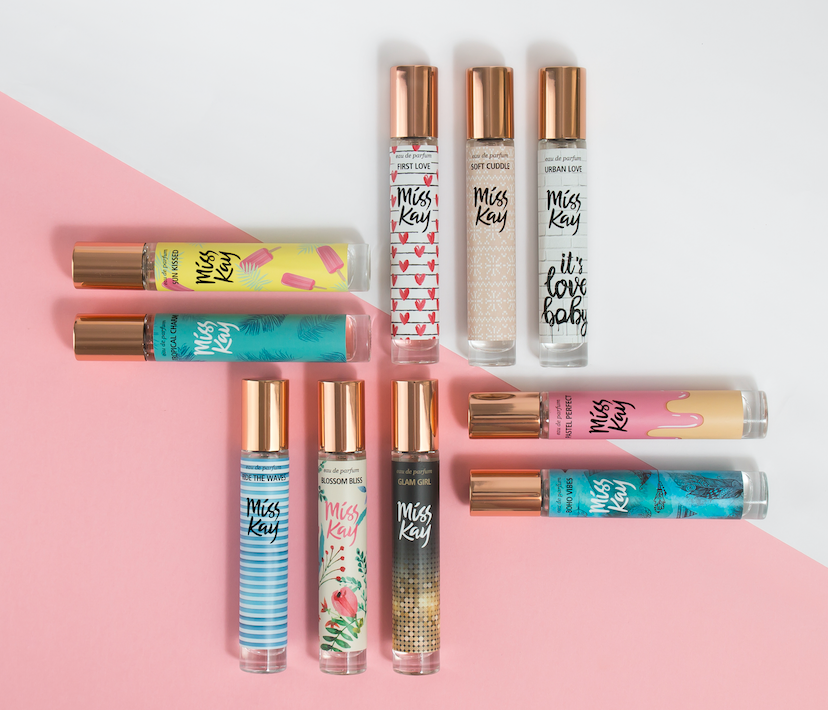 Εμπνευσμένα από την «πολύχρωμη» και ζωηρή προσωπικότητα των πιο trendy κοριτσιών, τα αρώματα της Miss Kay απευθύνονται στις beauty lovers που θέλουν να περνούν καλά, να απολαμβάνουν την κάθε στιγμή και να τη συνδυάζουν με το κατάλληλο άρωμα που θα δημιουργήσει τις πιο ανεξίτηλες αναμνήσεις.