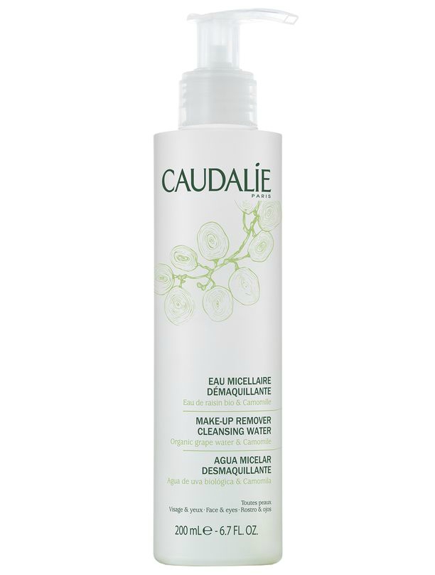 Caudalie, Micellar Cleansing Water, €14,70. Η αναζωογονητική και ανάλαφρη σύνθεσή του, με ενυδατικό βιολογικό Νερό σταφυλιών και καταπραϋντικό χαμομήλι, καθαρίζει, ενυδατώνει και καταπραΰνει την επιδερμίδα με μία μόνο κίνηση.