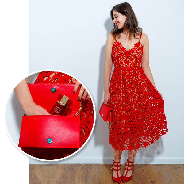 Έχοντας αυτά στο μυαλό μου, αποφάσισα πως φέτος τα Χριστούγεννα θα γινόμουν και εγώ αυτή η κοπέλα, θα γινόμουν η μούσα του εαυτού μου. Βήμα πρώτο ήταν η επιλογή του κατάλληλου κόκκινου συνόλου για τη μεγάλη μου εμφάνιση, το οποίο κατέληξε να αποτελείται από δαντελένιο φόρεμα, γόβες και τσάντα, όλα στην ίδια έντονη απόχρωση. Όσον αφορά στο μακιγιάζ, εννοείται πως το αγαπημένο μου κόκκινο κραγιόν ήταν μονόδρομος. Κανένα look δεν είναι ολοκληρωμένο φυσικά χωρίς ένα υπέροχο άρωμα και το νέο Modern Muse Le Rouge Gloss της Estée Lauder ήταν το μοναδικό που ταίριαζε ιδανικά στην περίσταση.