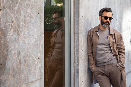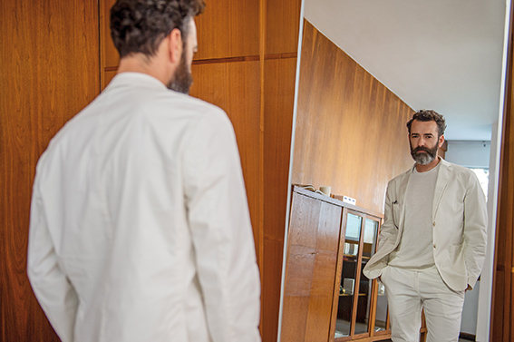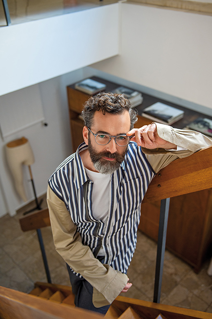 Επέστρεψε πιο σταθερά στην Ελλάδα το 2019, μετά το πρώτο GNTM, σε μια περίοδο που τα πράγματα είχαν αλλάξει και υπήρχε νέος αέρας στην πόλη. Τώρα, έπειτα από έναν και πλέον χρόνο πανδημίας και ολοκληρωτικού shut down, ο ίδιος μού λέει για την Αθήνα: «Κοίταξε, αυτή η εικόνα τώρα δεν είναι μια εικόνα αληθινή, όπως δεν είναι και σε καμία άλλη μεγάλη πόλη στον κόσμο. Ωστόσο, δεν το έχω μετανιώσει που επέστρεψα. Είμαι πάρα πολύ χαρούμενος που είμαι εδώ και περπατάω από το σπίτι μου στο στούντιό μου και που περνάω πάρα πολύ ωραία στο ατελιέ – έχω μια πολύ μικρή ομάδα που δουλεύουμε μαζί πολύ δημιουργικά κάθε μέρα. Από την άλλη, έχουμε την εκπομπή, μια άλλη δουλειά που την έμαθα στην πορεία αλλά που με ευχαριστεί και μου δίνει άλλα πράγματα. Οπότε αυτή την περίοδο με κρατάει ο μικρόκοσμος που έχω χτίσει γύρω από την πόλη και όχι η πόλη αυτή καθαυτή».
