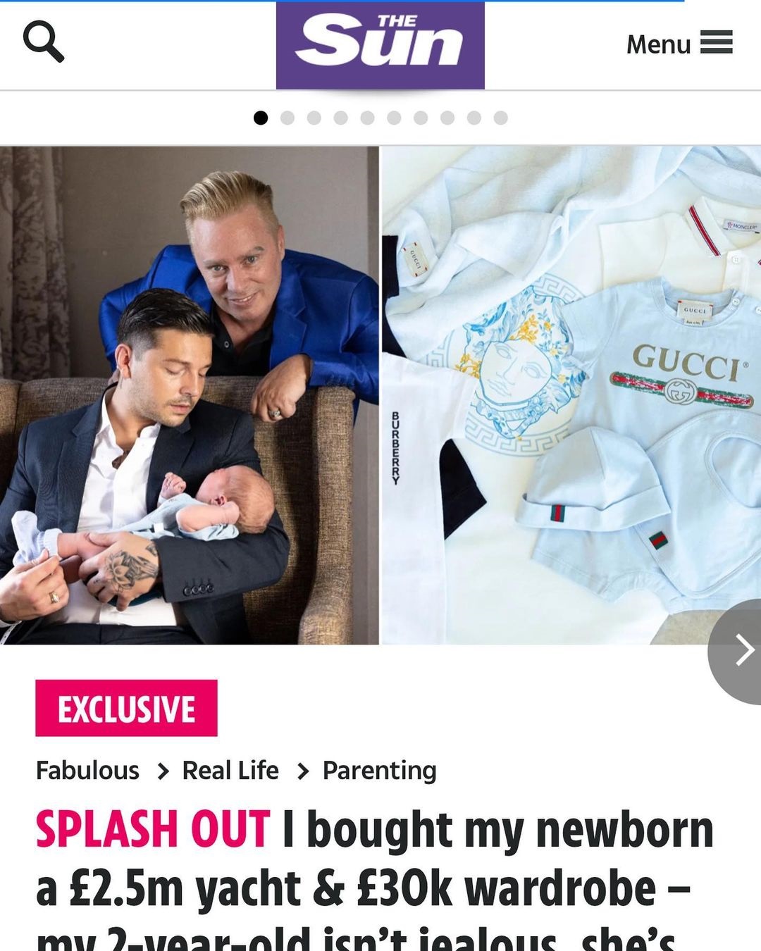 Ο Barrie Drewitt-Barlow, 52 ετών, και ο αρραβωνιαστικός του Scott Hutchinson, 27 ετών, τον Αύγουστο απέκτησαν έναν γιο, μέσω παρένθετης μητέρας. Από τότε, κάνουν συνεχώς στον μικρό Romeo πανάκριβα δώρα.