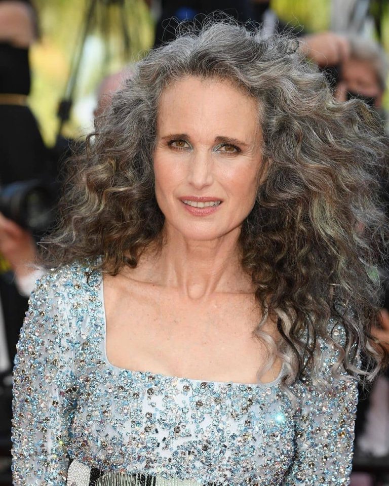 CELEBRITY BEAUTY Τα γκρίζα μαλλιά της Andie MacDowell έκαναν θραύση στο Φεστιβάλ των Καννών 12 Ιουλίου 2021