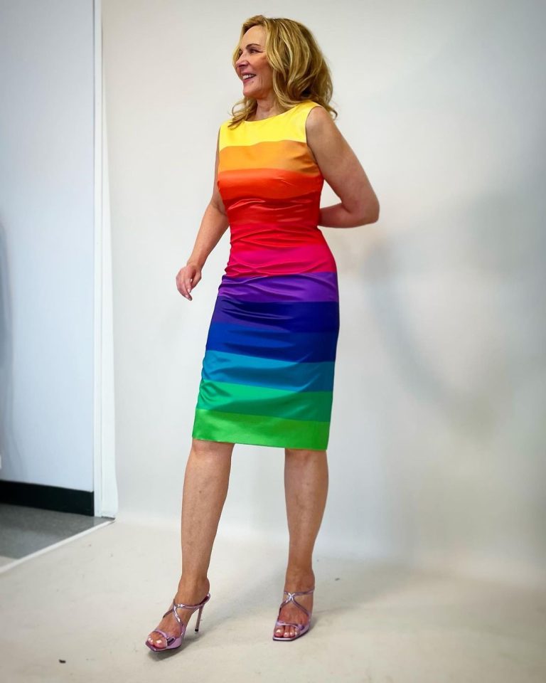 CELEBRITY STYLE H Kim Cattrall γιόρτασε τον Pride Month με φόρεμα Vassilis Zoulias στα χρώματα του ουράνιου τόξου 23 Ιουνίου 2023
